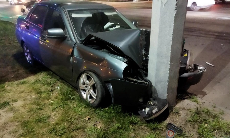 При повороте налево молодой человек не уступил дорогу и столкнулся с встречным автомобилем LADA Priora, который от столкновения наехал на световую опору.