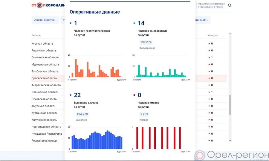 В России за сутки уменьшилось число подтверждённых новых случаев заболевания COVID-19. Так, 4 декабря было 6598 человек, 5 декабря зарегистрировано 5667 (-931 за сутки).