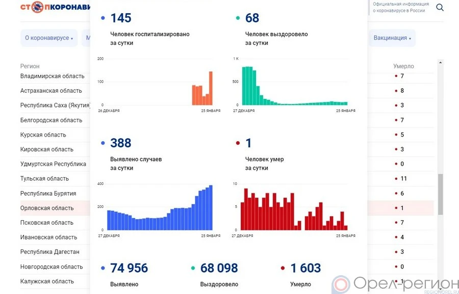 370 720 орловцев на 25 января полностью завершили вакцинацию.