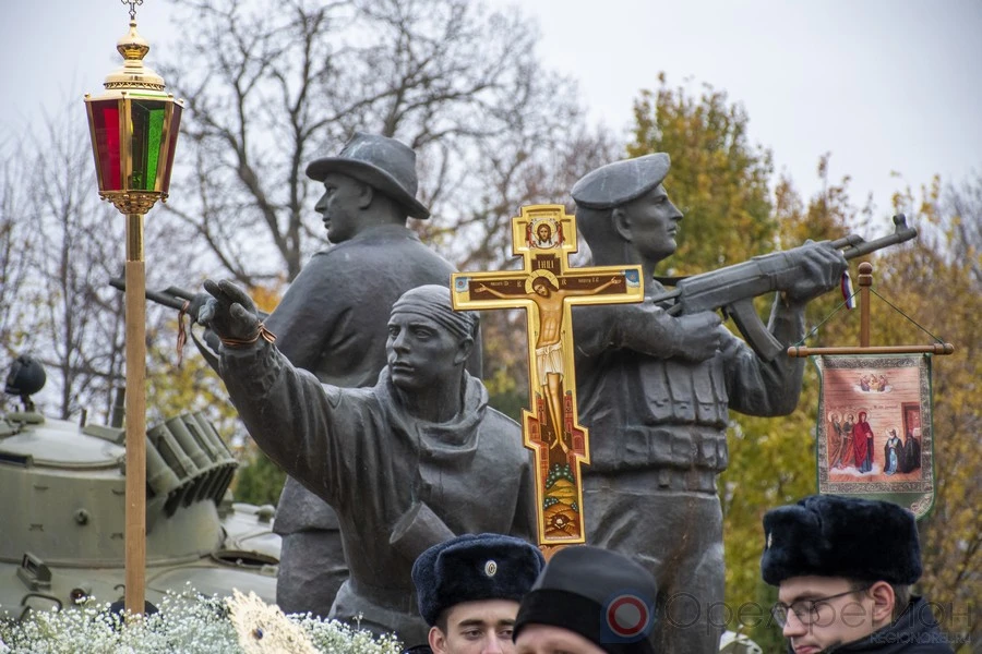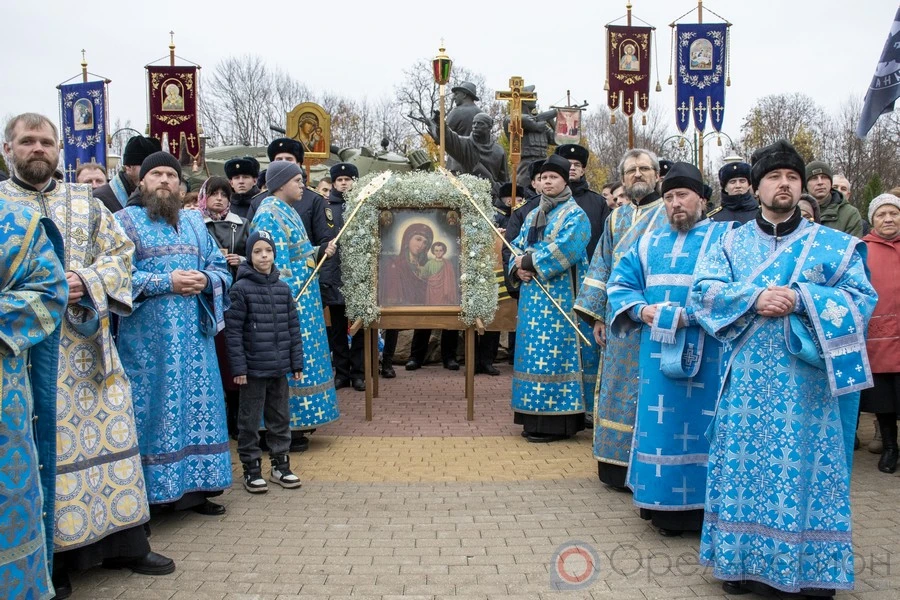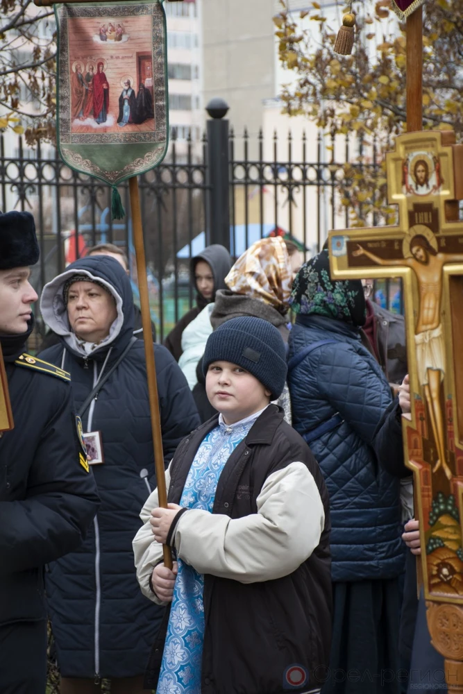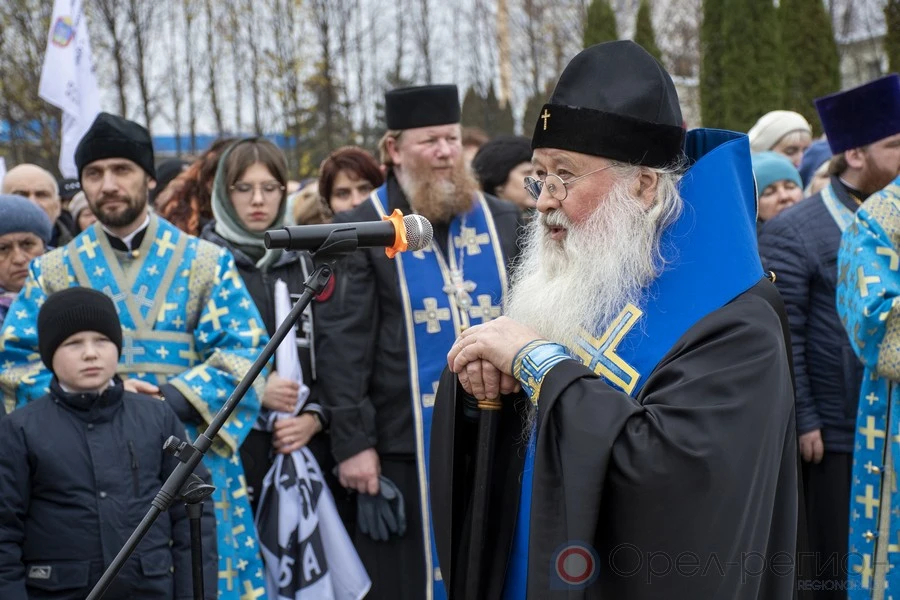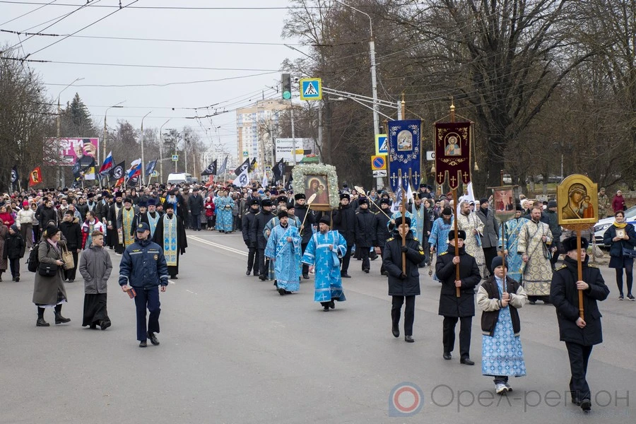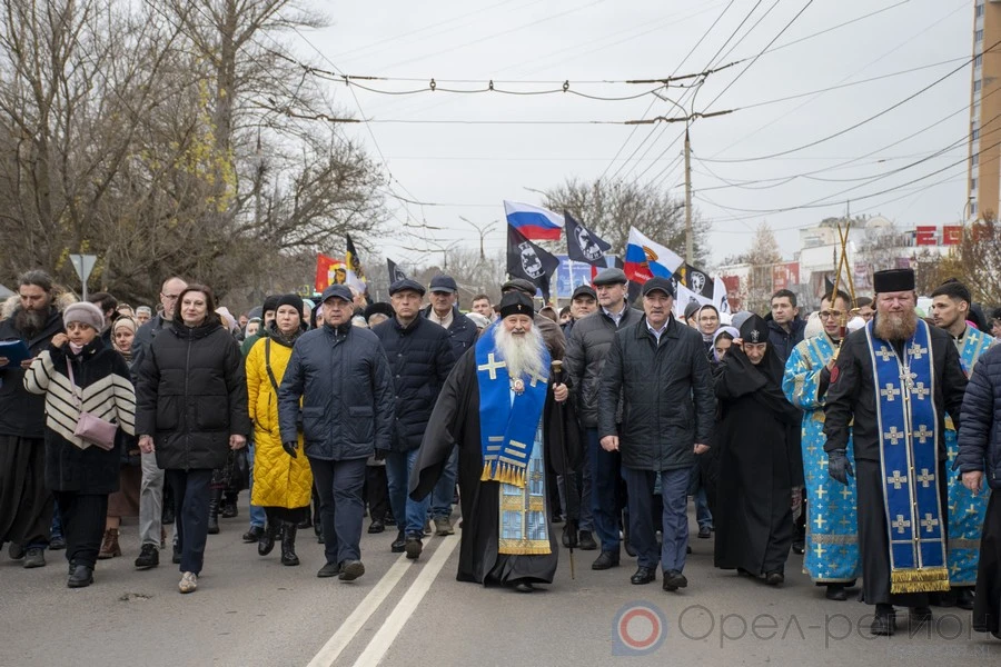 Затем около двух тысяч орловцев прошли в торжественном молитвенном шествии по Наугорскому шоссе от храма Казанской иконы Божией Матери до сквера воинов-интернационалистов.