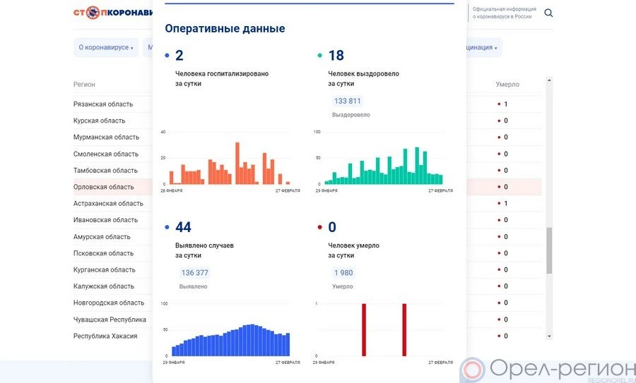 Выздоровели 133 811 человек (18 за сутки), умерли 1980 (за сутки никто не умер).