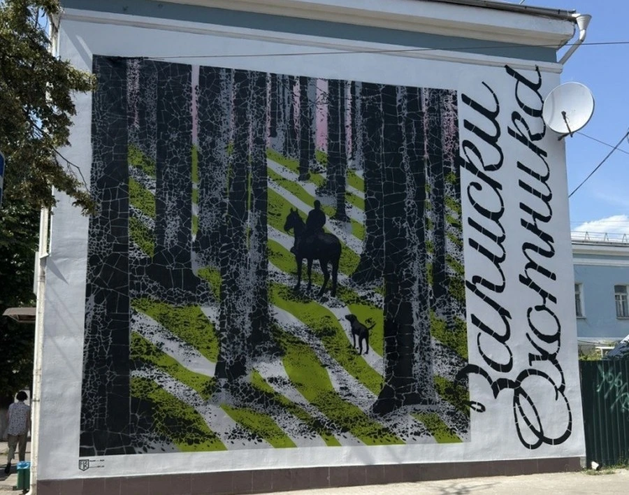 Первый мурал, посвящённый бессмертному произведению Ивана Тургенева «Записки охотника», появился на фасаде дома № 16/18 по ул. Октябрьской. Автором работы стал известный петербургский уличный художник Филипп Дульмаченко (творческий псевдоним художника FI2K).