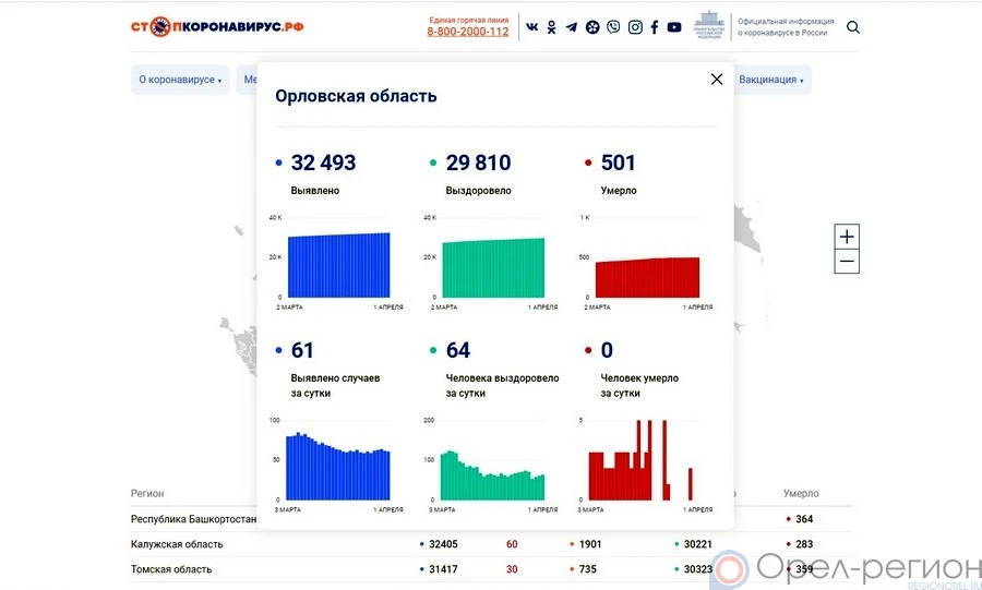 За период пандемии в регионе выздоровели 29 810 человек (+64 за сутки), умер 501 человек (+0 за сутки).