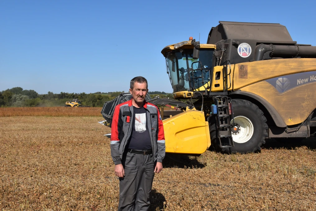 — В этом сезоне убирал пшеницу, рапс, лён, теперь вот — сою. Лён начали сеять с прошлого года, к нему ещё надо приноровиться. Культура нежная, со своими особенностями. Используем специальные очёсывающие жатки, — делится Владимир. — Думаю, что до конца месяца мы полностью закончим уборку. Только бы погода подержалась.