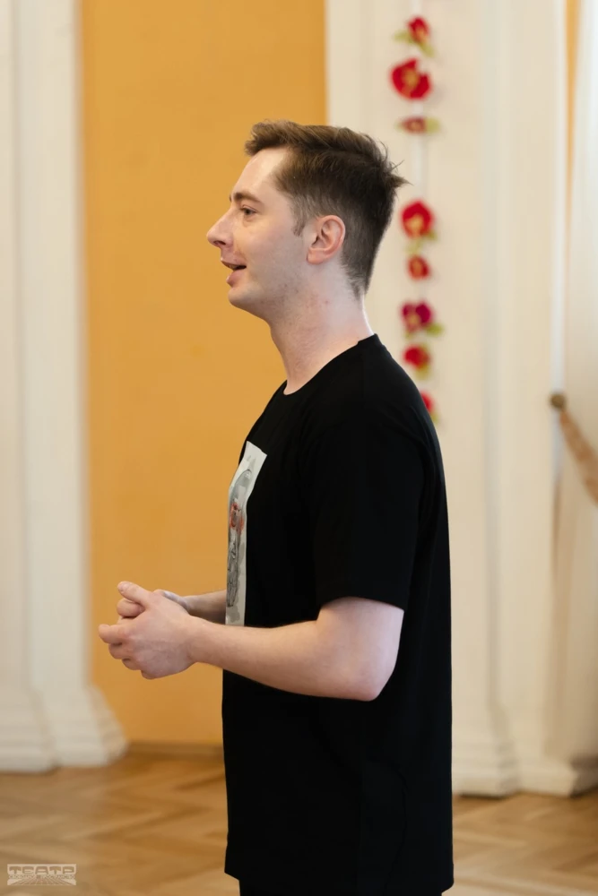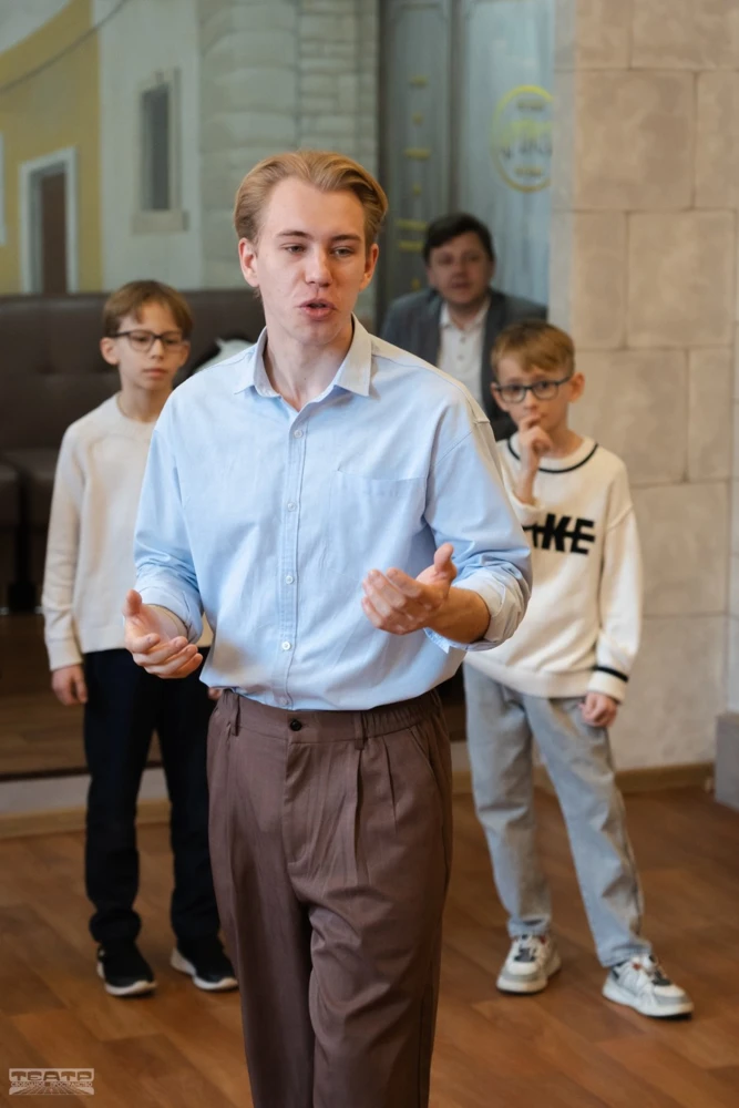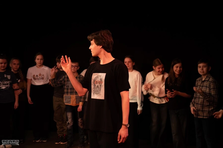 Иван Кирюхин начал с театрального упражнения «зип-зап-зоп». Ребята встали в круг и должны были по очереди передавать друг другу эти слова. Тот, кто ошибётся, выбывает из игры. Казалось бы, проще некуда. Но отнюдь. Это упражнение используется для развития концентрации, энергии и взаимодействия в группе, а также помогает справляться с ошибками.
