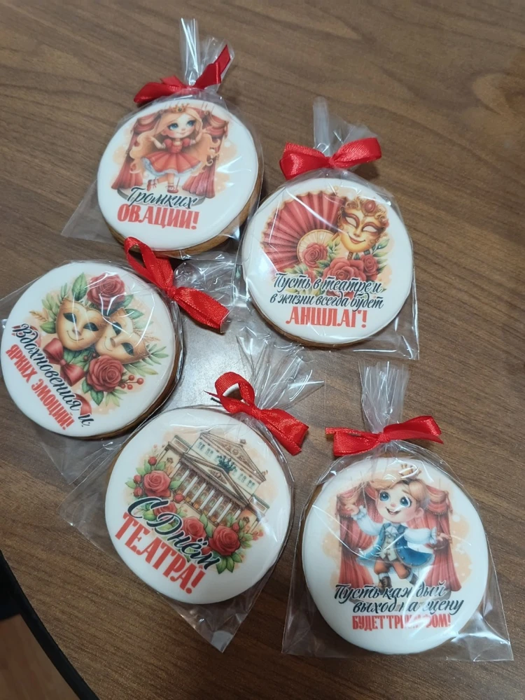 Родители воспитанников школы «Леонардо» приготовили для актёров маленькие пряничные сувениры с картинками на театральную тематику. Такое вот сладкое поздравление с профессиональным праздником.