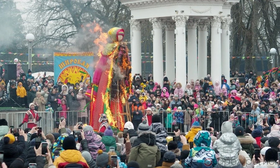 Люди пели, танцевали, участвовали в весёлых конкурсах и, конечно, лакомились вкусными угощениями. Самым ярким моментом праздника стало сжигание чучела Масленицы.