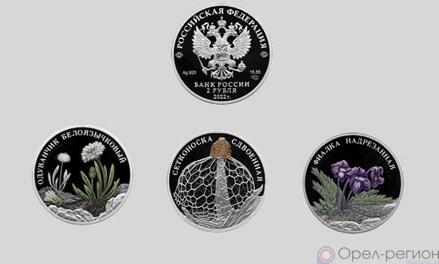 19 июля 2022 года Банк России выпустил в обращение памятные серебряные монеты номиналом 2 рубля серии «Красная книга» с изображением одуванчика белоязычкового, сетконоски сдвоенной, фиалки надрезанной.
