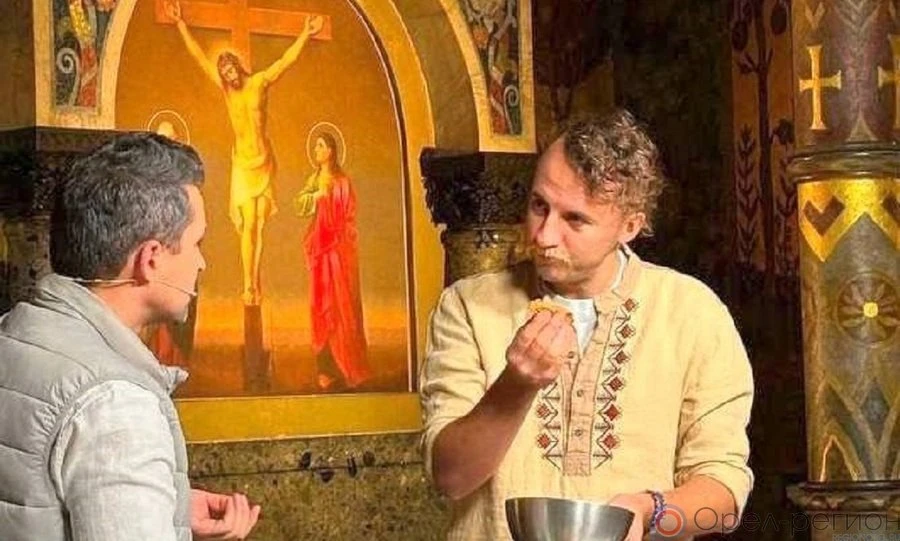 Шоумен-безбожник, одетый в ритуальную вышиванку и подстриженный а ля хохол, прямо на алтаре разложил харчи и затеял гнусную стряпню в окружении икон и крестов.