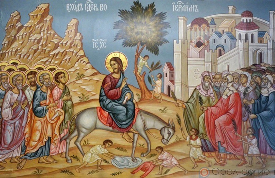 Это торжественное прибытие Спасителя в Иерусалим верхом на осле, под приветственные возгласы учеников и народа, было осуществлением ветхозаветных пророчеств, особенно пророка Захарии (Зах. 9:9). Христос идёт не истреблять римские легионы и изменять политическое устройство мира. Его Царство «не от мира сего». Поэтому под Иисусом не боевой конь, но кроткий осёл, символизирующий мир.