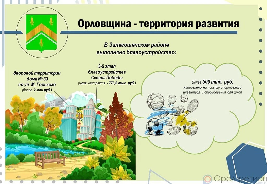 Благоустройство дворовой территории дома №33 по ул. М. Горького и 3-й этап благоустройства сквера Победы проводятся в посёлке Залегощь в рамках муниципальной программы по формированию современной городской среды. Стоимость этих работ – почти 3 млн рублей.
