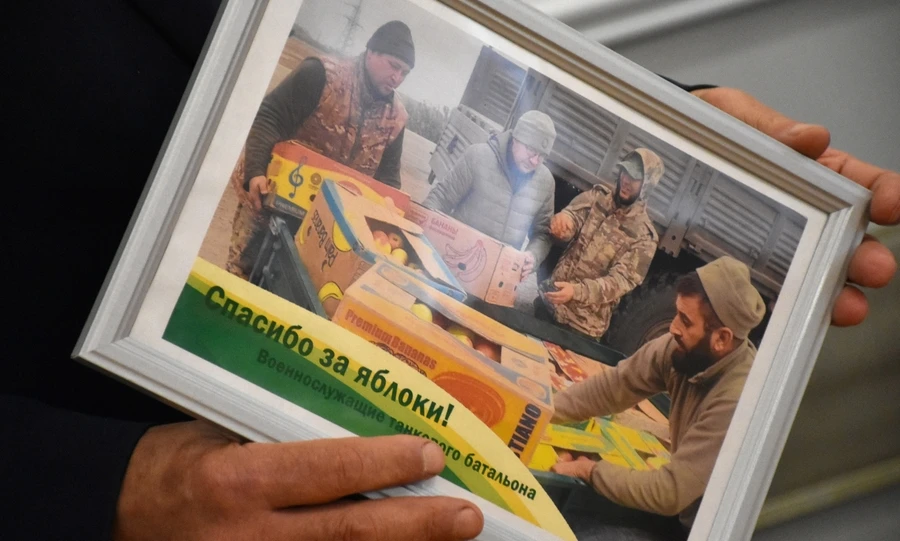 Михаил Васильевич искренне поблагодарил учёных-селекционеров за поддержку участников СВО и передал сотрудникам плодово-ягодной станции фотографию с фронта с надписью: «Спасибо за яблоки!»