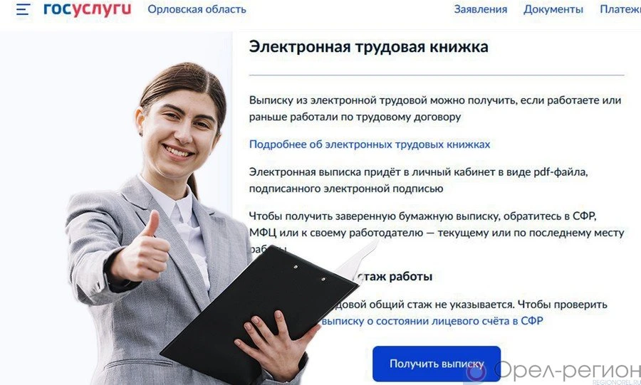- Жители региона выбирают электронную трудовую книжку, так как она даёт дополнительную возможность для дистанционного трудоустройства. В отличие от бумажной в электронной трудовой книжке внесение ошибочных, неточных и недостоверных сведений сводится к минимуму. Кроме того, ЭТК - это возможность быстрого получения информации о трудовой деятельности. Запросив указанные сведения в личном кабинете на портале Госуслуг или сайте СФР, гражданину поступит выписка, в которой будет содержаться информация, представленная работодателями: от наименования организации и должности до данных приказа о приёме или увольнении, - рассказали в отделении Социального фонда России по Орловской области.