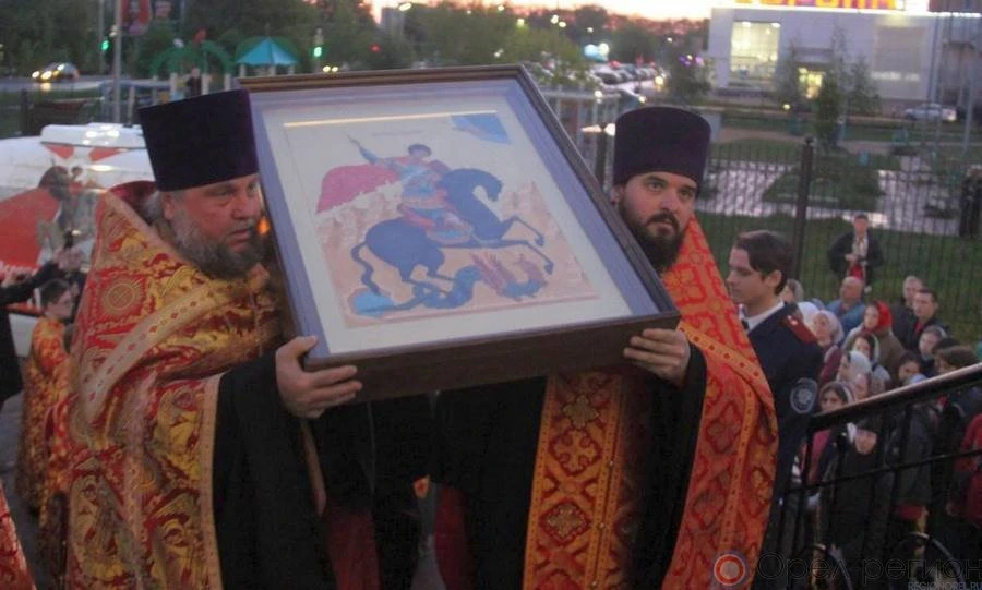 В эти дни в Михаило-Архангельском соборе духовенство Орловской епархии каждый час будет совершать молебное пение с акафистом у ковчега с мощами святого Георгия Победоносца.