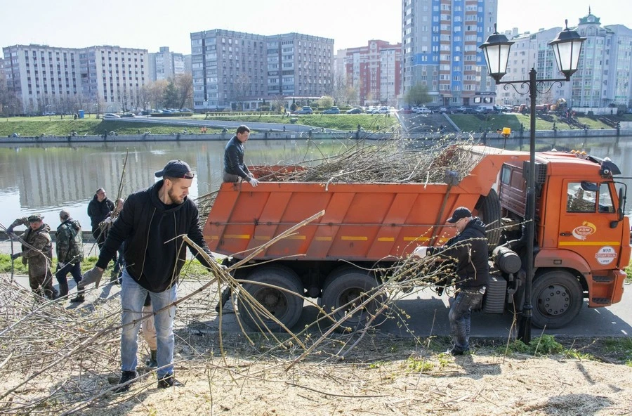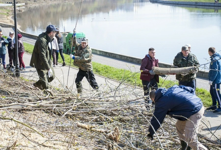 Порядок в прибрежной зоне реки от лодочной станции до Герценского моста наводили сотрудники областной и городской администраций — всего более ста человек. Девушки собирали всевозможный мусор в чёрные пластиковые пакеты, а мужчины носили в грузовики оставшиеся после недавней выпиловки деревьев и кустарников брёвна, ветки и пеньки. Больше всего попадались бутылки, пакеты, стеклянные осколки. Кузова КамАЗов наполнялись древесными отходами в считанные минуты.