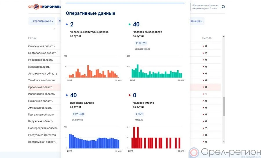 Выздоровели 110 523 человека (40 за сутки), умерли 1922 (за сутки никто не умер).
