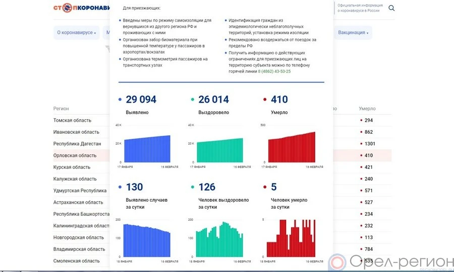 За период пандемии в регионе выздоровели 26 014 человек (+126 за сутки), 410 умерли (5 за сутки).