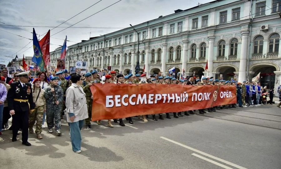 В 11.00 на площади Ленина начнётся торжественное шествие войск Орловского территориального гарнизона и плац-концерт «Течёт река Бессмертного полка», а в 13.00 с площади Ленина будет дан старт шествию Бессмертного полка.