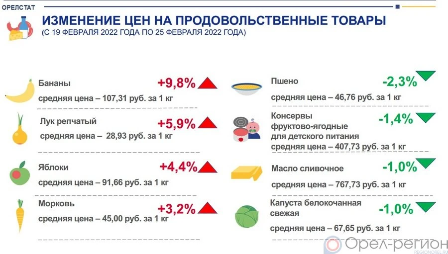 По их сведениям, за неделю с 19 по 25 февраля, в регионе, в частности, подорожали бананы - на 9,8%, лук репчатый - на 5,9%, яблоки - на 4,4%.