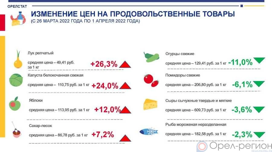 По их сведениям, за неделю с 26 марта по 1 апреля, в регионе, в частности, выросли в цене лук репчатый - на 26,3%, капуста белокочанная свежая - на 24%, яблоки - на 12%, сахар-песок - на 7,2%.