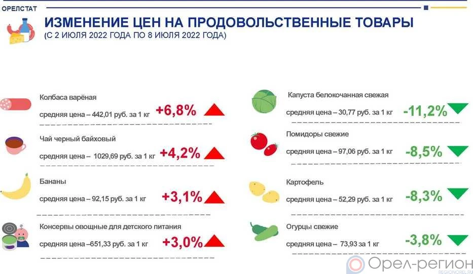 По их сведениям, за неделю с 2 по 8 июля в регионе, в частности, произошло повышение цен на колбасу варёную - на 6,8%, на чай чёрный байховый - на 4,2%, на бананы - на 3,1%.