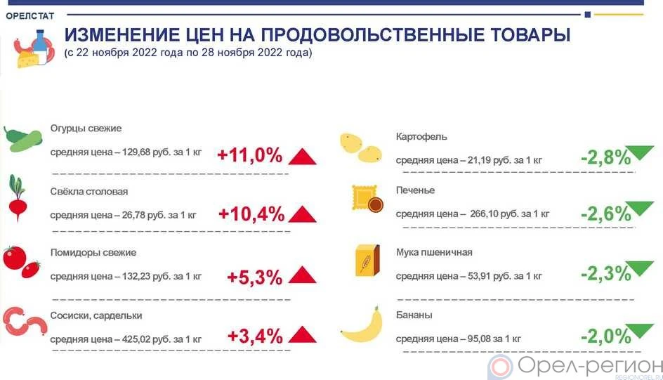 По их сведениям, за неделю с 22 по 28 ноября в регионе, в частности, подорожали огурцы свежие - на 11%, свёкла столовая - на 10,4%, помидоры свежие - на 5,3%.