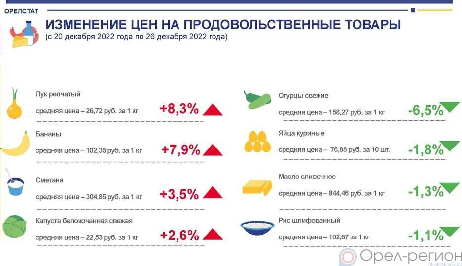 По их сведениям, за неделю с 20 по 26 декабря в регионе, в частности, подорожали лук репчатый - на 8,3%, бананы - на 7,9%, сметана - на 3,5%.
