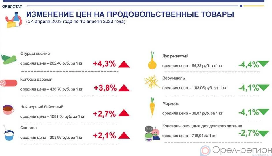 По их сведениям, за неделю с 4 по 10 апреля в регионе, в частности, подорожали огурцы свежие - на 4,3%, колбаса варёная - на 3,8%, чай чёрный байховый - на 2,7%.
