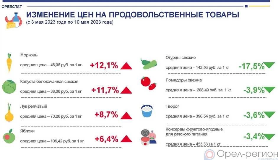 По их сведениям, за неделю с 3 по 10 мая в регионе, в частности, подорожали морковь - на 12,1%, капуста белокочанная свежая - на 11,7%, лук репчатый - на 8,7%,