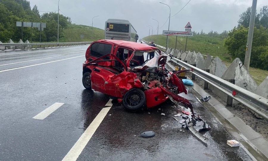 21-летний водитель Daewoo Matiz наехал на металлическое дорожное ограждение справа, выехал на встречную полосу и наехал на ограждение слева, после чего столкнулся со встречным автобусом Mercedes-Benz.