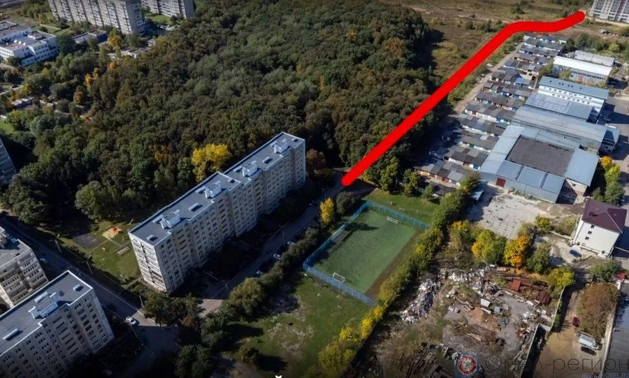 Дорога пройдёт по самому краю лесного массива вдоль гаражного кооператива.