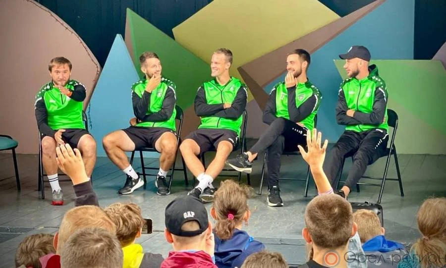 Футболисты Артём Лукша, Иван Щербаков, Евгений Рагулькин, Максим Дмитриев и Сергей Полосин рассказали детям о пользе спорта, ответили на вопросы о футболе, поделились самыми интересными моментами с матчей и подарили сувениры на память о встрече.