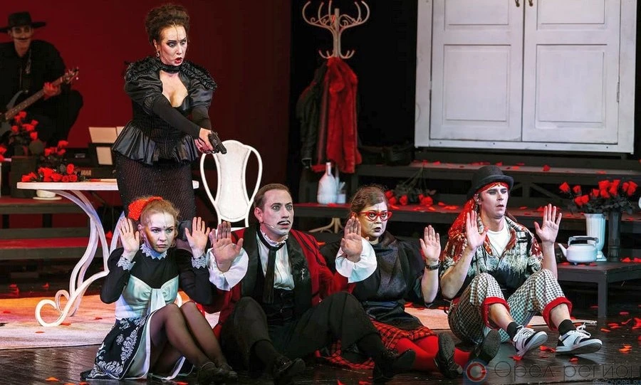 Редкий случай, когда все персонажи сыграны настолько ярко, что надолго запоминаются своими фразами и «фишками», своими красивыми чёрнобело-красными нарядами. Именно в этих цветах выдержано всё в спектакле: костюмы, декорации, бутафория. Ну прямо как клип Seven Nation Army американской группы White Stripes, музыки которой так много в спектакле.