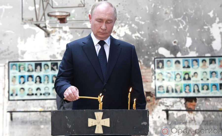 Глава Северной Осетии Сергей Меняйло и другие сопровождавшие президента официальные лица показали Владимиру Путину здание школы, где в память о жертвах теракта создали международный культурно-патриотический центр профилактики терроризма. Глава государства возложил цветы к памятнику заложникам террористов «Дерево скорби», а также к мемориалу бойцам спецподразделения «Альфа» и «Вымпел», штурмовавшим образовательное учреждение. Президент также почтил память жертв теракта на кладбище «Город ангелов».