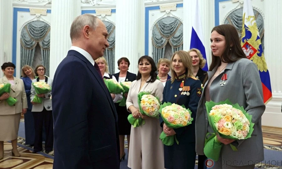 Почётное звание «Мать-героиня» получили мама 11 детей Ольга Стрельникова и Альбина Хайдаршинова, которая подарила жизнь 13 детям. Корреспондент из Херсонской области Влада Луговская получила из рук президента орден Мужества. Влада работала в непосредственной близости от зоны военных действий и попала под обстрел ВСУ. Во время украинской атаки осколок пробил ей грудь навылет, но девушку удалось спасти.
