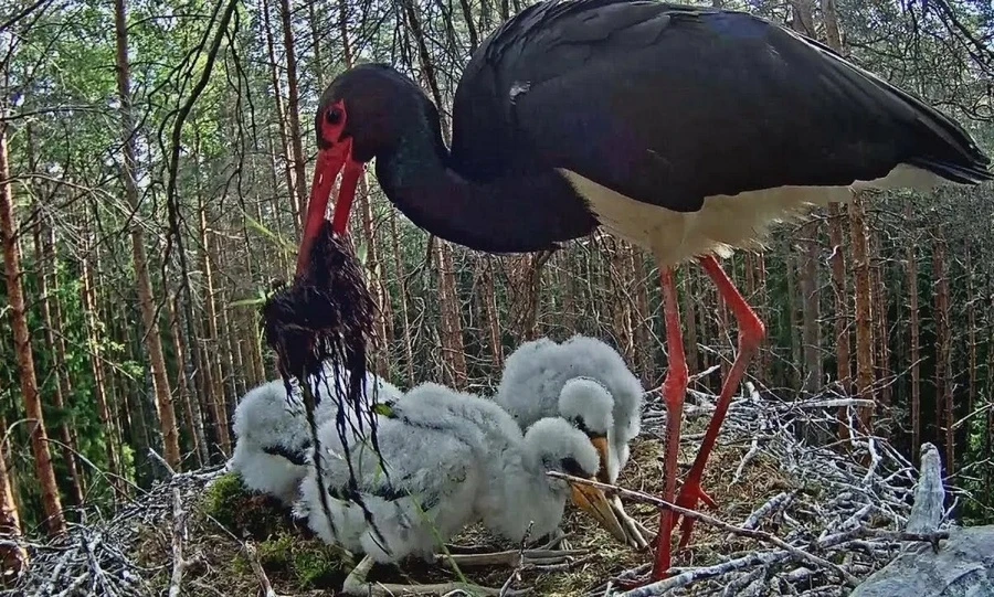 Редкие чёрные аисты снова прилетели на Орловщину в искусственное гнездо для комфортной семейной жизни.