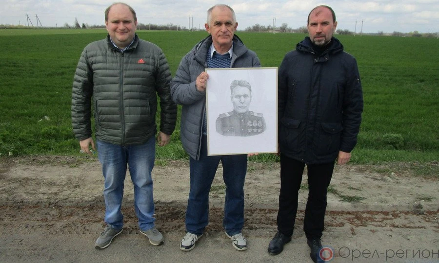 1100 километров по территории четырёх областей России мы преодолели за 17 часов. Три часа 28 апреля заняла процедура передачи памятника и наших подарков донецким товарищам. Несколько экземпляров недавно вышедшей моей книги «Золотые звёзды Орловщины» (том 1), один из очерков которой посвящён Семёну Семёнову, я передал для дочери Семёна Артёмовича Александре Семёновне Емельяновой и внукам героя. Для них же покровский художник Юрий Новиков нарисовал портрет Семёнова.