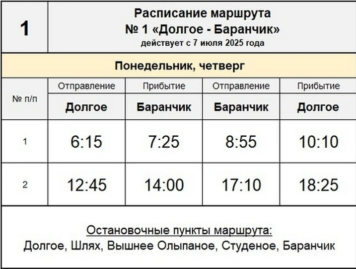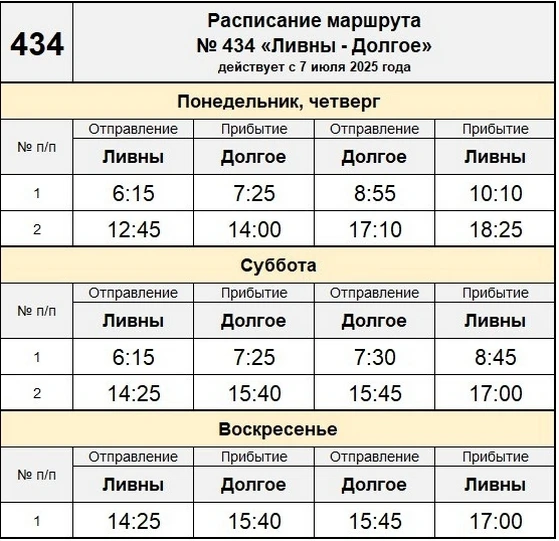 Изменилось расписание автобусов «Ливны — Долгое» и «Долгое — Баранчик»