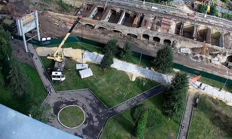 Кроме того, продолжаются работы по выносу инженерных сетей и монтажу подпорных стенок, завершена отсыпка основания для монтажа подпорной П-образной стены, которая будет находиться со стороны Заводского района.
