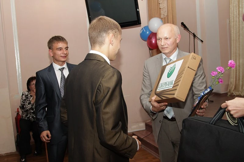 В этом году двое одиннадцатиклассников покидают стены ставшего им родным дома. Для приобретения подарков выпускникам коллектив Курского отделения Сбербанка организовал сбор средств. Все подразделения банка откликнулись на эту инициативу, и в итоге удалось приобрести два ноутбука, а также комплектующие к ним (сумки и компьютерные мышки).