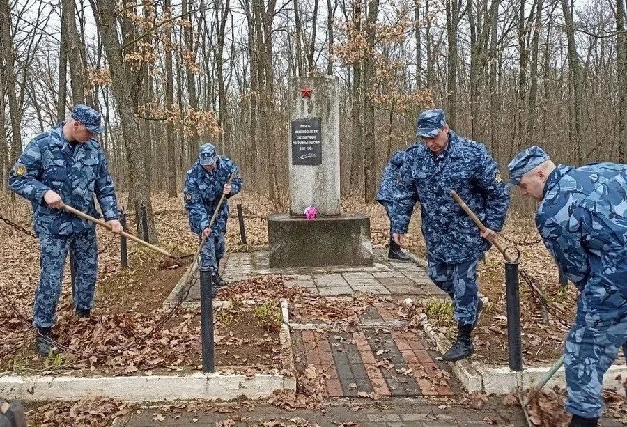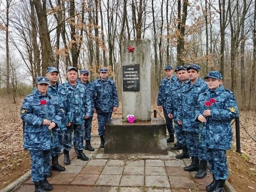 Конвоиры очистили от прошлогодней листвы и сухой травы территорию у памятного знака жертвам фашизма, расположенного в лесном массиве у деревни Гать, и памятника «Стоявшим насмерть при защите г. Орла» возле посёлка Малая Гать.
