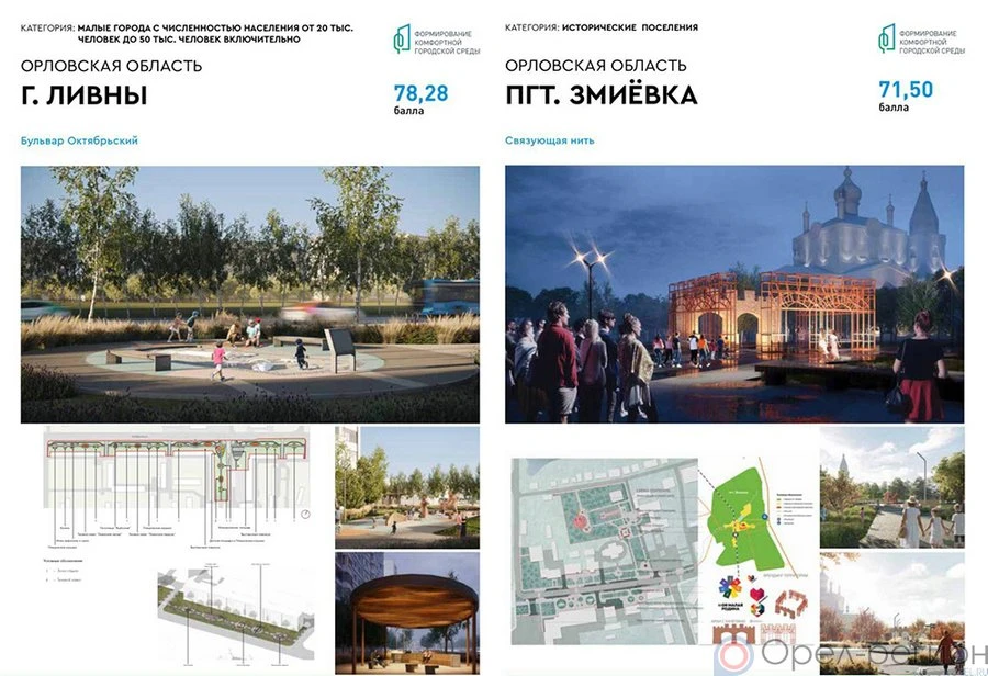 Как рассказал губернатор Орловской области Андрей Клычков, город Ливны получит 90 млн рублей на реализацию проекта «Бульвар Октябрьский», а пгт. Змиёвка Свердловского района - 80,8 млн рублей на проект «Связующая нить».