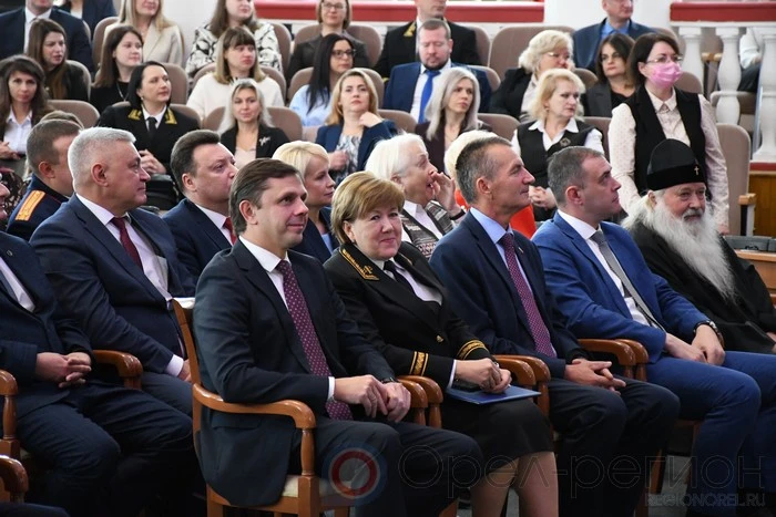 На торжественном заседании 3 октября в администрации области, посвящённом юбилею мировой юстиции региона, губернатор Андрей Клычков, и. о. председателя Орловского областного Совета народных депутатов Михаил Вдовин, главный федеральный инспектор по Орловской области Эдуард Голованёв, председатель Орловского областного суда Елена Суворова, начальник Управления судебного департамента в Орловской области Борис Величкин, начальник Управления по организационному обеспечению деятельности мировых судей Орловской области Алексей Тюрняков, митрополит Орловский и Болховский Тихон поздравили представителей судейского сообщества.