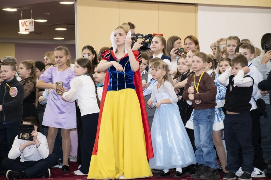 Организаторы мероприятия постарались. В зале было много героев сказок и мультфильмов в ярких костюмах: царь, принц с принцессой, индеец, Красная Шапочка, Морозко и другие известные персонажи.