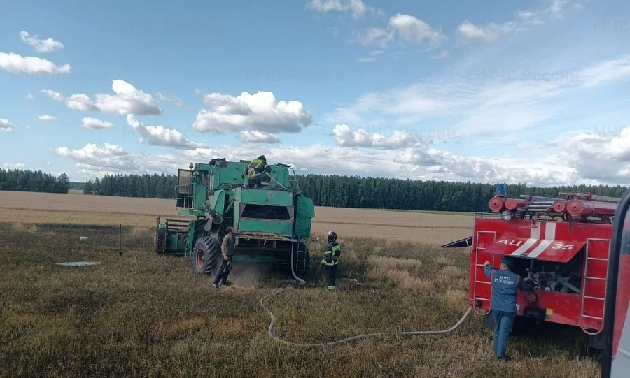 Днём в д. Хотимль Хотынецкого района произошло возгорание комбайна.