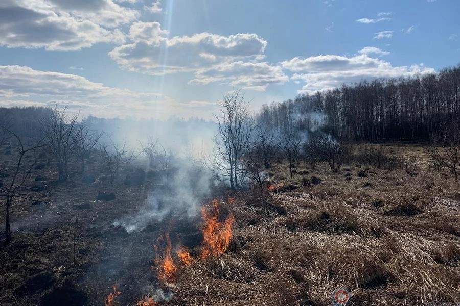 Самое первое загорание в текущем году было зафиксировано на площади 0,1 га недалеко от деревни Верхнее Муханово Троснянского района.