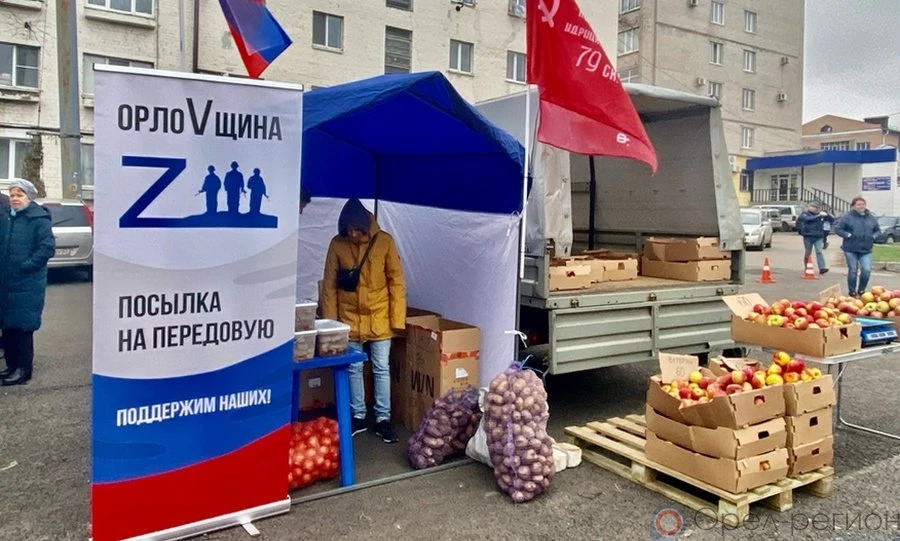 Тушёнка и сгущёнка, картошка и лук, печенье и конфеты, солёное и свежее сало, картофель, мёд, туалетная бумага и салфетки, носки и бельё - это и многое другое неравнодушные орловцы и предприниматели приносят на ул. Приборостроительную и Комсомольскую площадь.