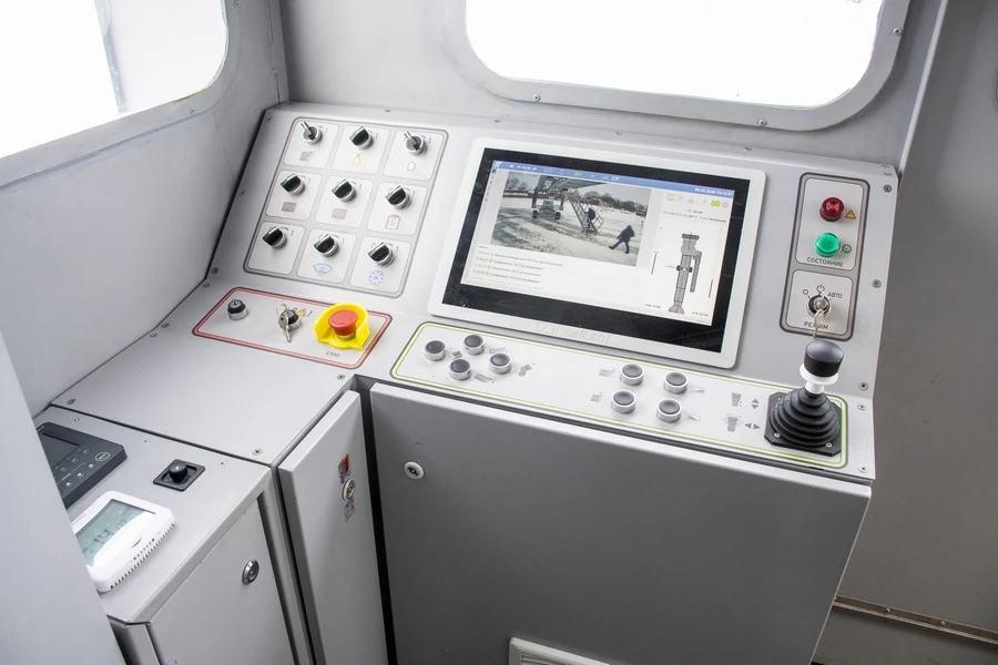 — Телескопический трап позволяет обслуживать воздушные судна практически любого класса, — раскрывает другие характеристики комплекса представитель АО «ЦНИИАГ» Руслан Нуриев. — Трап может маневрировать в пределах рабочей зоны по перрону аэропорта как в ручном режиме, с помощью оператора, сидящего в кабине, так и в автоматическом режиме, удалённо. Точно, до сантиметров, пристыковаться относительно входной двери самолёта, с помощью системы выравнивания подстроиться под высоту авиалайнера при посадке и высадке пассажиров, погрузке и разгрузке багажа, заправке топливом. Кабина, в которой может находиться оператор, снабжена различными приборами управления и способна обеспечивать поворот на 180 градусов.
