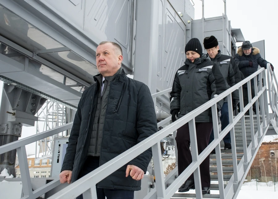 Вместе с руководством завода, представителями АО «ЦНИИАГ» и регионального департамента промышленности и торговли мы побывали внутри комплекса, прошлись по телескопическому туннелю, осмотрели оборудование поворотной кабины, увидели процесс пристыковки агрегата к имитатору самолёта «Суперджет-100».