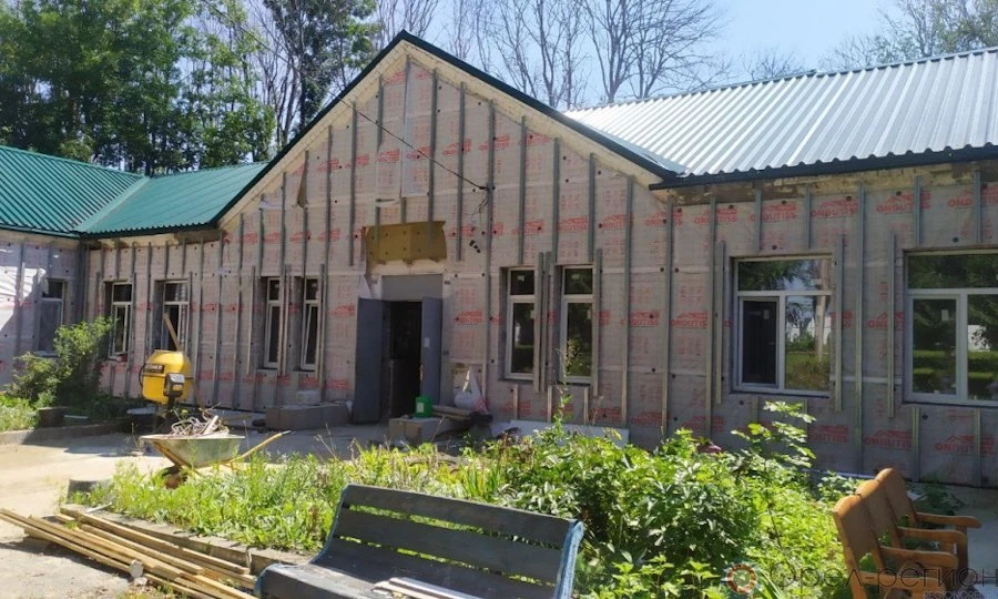 Сейчас на объекте подрядчиком полностью завершены демонтажные работы, произведено укрепление здания, установлены современные оконные стеклопакеты, начаты отделочные работы внутри здания и замена системы водоотведения, выполняется оштукатуривание стен специальными материалами в рентген кабинете.